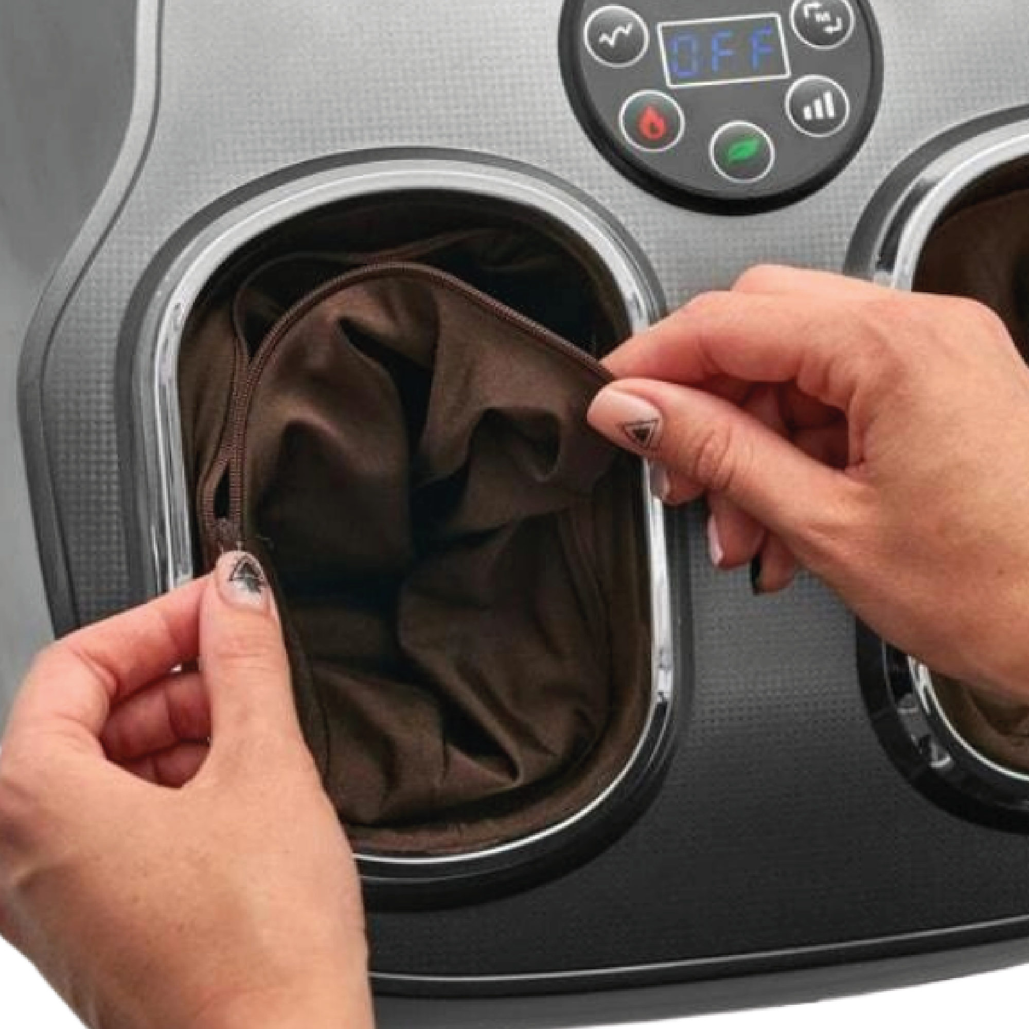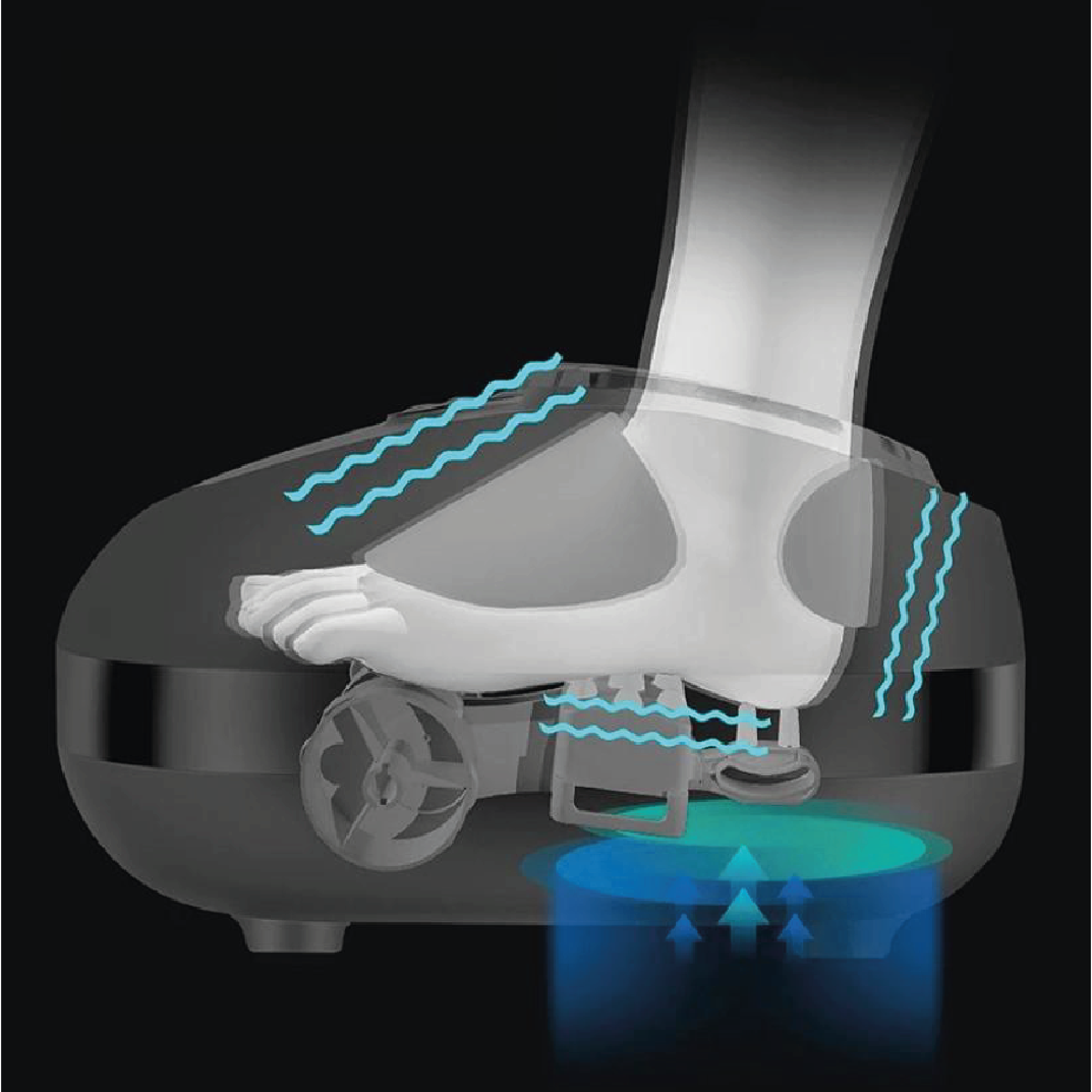 • Ayak tabanı, topuk ve ayak parmaklarına baskı uygulayan yoğurma başlıkları ile derin doku masajı sağlar.